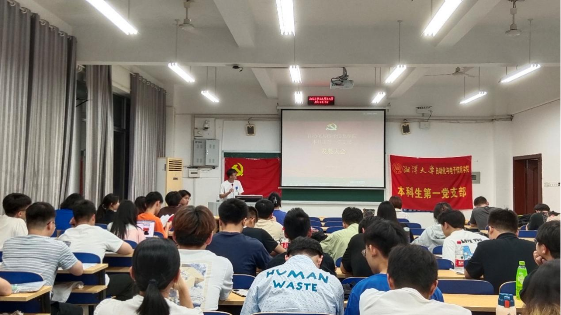 本科生第一党支部于兴湘教学楼C402教室召开预备党员接收大会,讨论、决议关于刘旭东等11名同学为预备党员相关事宜。此次大会由党支部副书记刘锐萍主持,20位正式党员、两位预备党员和14位发展对象到场参加。