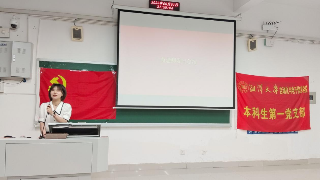 观看纪录片结束后,蒋昱梅“牢记入党初心,践行时代使命”为主题,给全体党员上了一堂主题党课,并相互交流心得体会,同时也提出“坚守初心”的期冀,勉励全体党员要“不抱功利心入党”,要“时刻牢记自己的使命”。