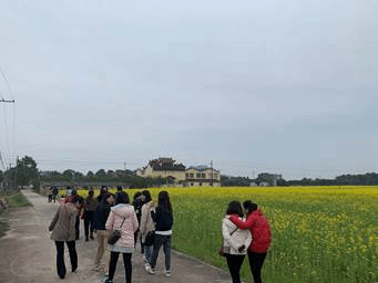 周洛大峡谷风景区附近油菜花田争相斗艳,景区内磐石林立,峡谷空灵,瀑布秀美,寒潭清丽。院女工们成群结队,边欣赏美景边欢笑交谈,在潺潺泉水和鸟语花香气息的熏染下,充满了对未来生活和工作的美好憧憬。