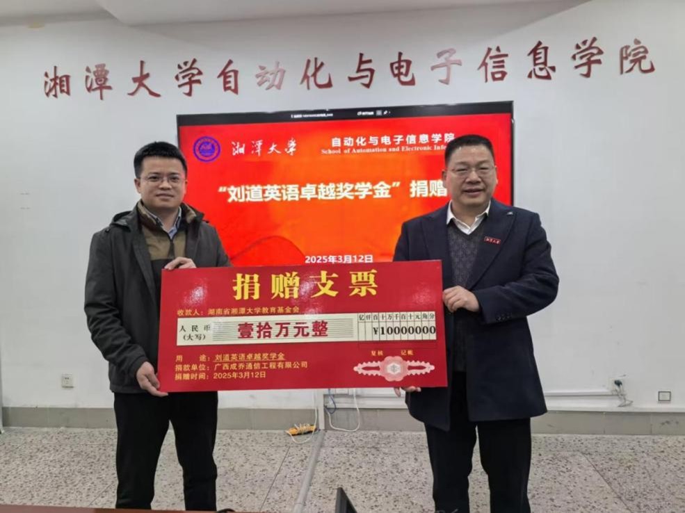 捐赠10万元,设立“刘道英语卓越奖学金”,助推母校教育事业发展。校友刘道、秀人集