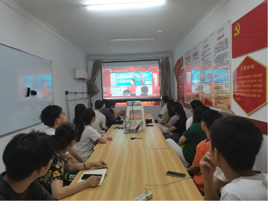 71日下午,秀人集 党支部组织关工委副主任彭爱莲老师及22名党员同学在金瀚林八栋308集中观看青春心向党,奋斗正当时——“奋斗青春号”主题班会、微课展播分享会。