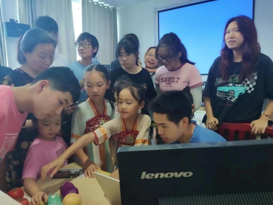 在中午休息后,大学生志愿者陪同小朋友一起参观了马克思主义学院的思政体验室,在大家感受到了全新的展示方式——3D放映,小朋友们戴上3D眼镜,在不断变化的虚拟空间中,深切地感受红色文化,即新颖又有趣。后,大学生志愿者们又与小朋友们开展了深入互动的素拓和游戏,其中人体拷贝、成语接龙等游戏在启发小朋友们思考的同时又让他们感受到了此次活动的乐趣。后,大学生志愿者们为小朋友们送上了礼物和联系方式,圆满结束了此次活动。