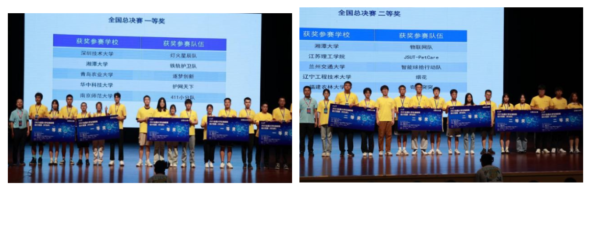 在陈洋卓、蔡晓雯两位老师的指导下,龙荣亮、涂腾辉、李晓婧和黄嘉琪团队作品《“印”你所想·基于“物联网+AI”的手持打印机》获全国一等奖和兆易创新科技特别创新奖,且进入全国六强。在徐玲林、翦丹两位老师的指导下,刘加林、寻佳威、刘恋和沈澳团队作品《铁轨护卫·基于北斗的枕轨螺栓自动涂油养护机》获全国一等奖。在吴亚联、谭貌两位老师的指导下,游蕾、康伟泉、邓贻品和戴睿团队作品《基于AIOT的婴儿守护卫士》获全国二等奖。