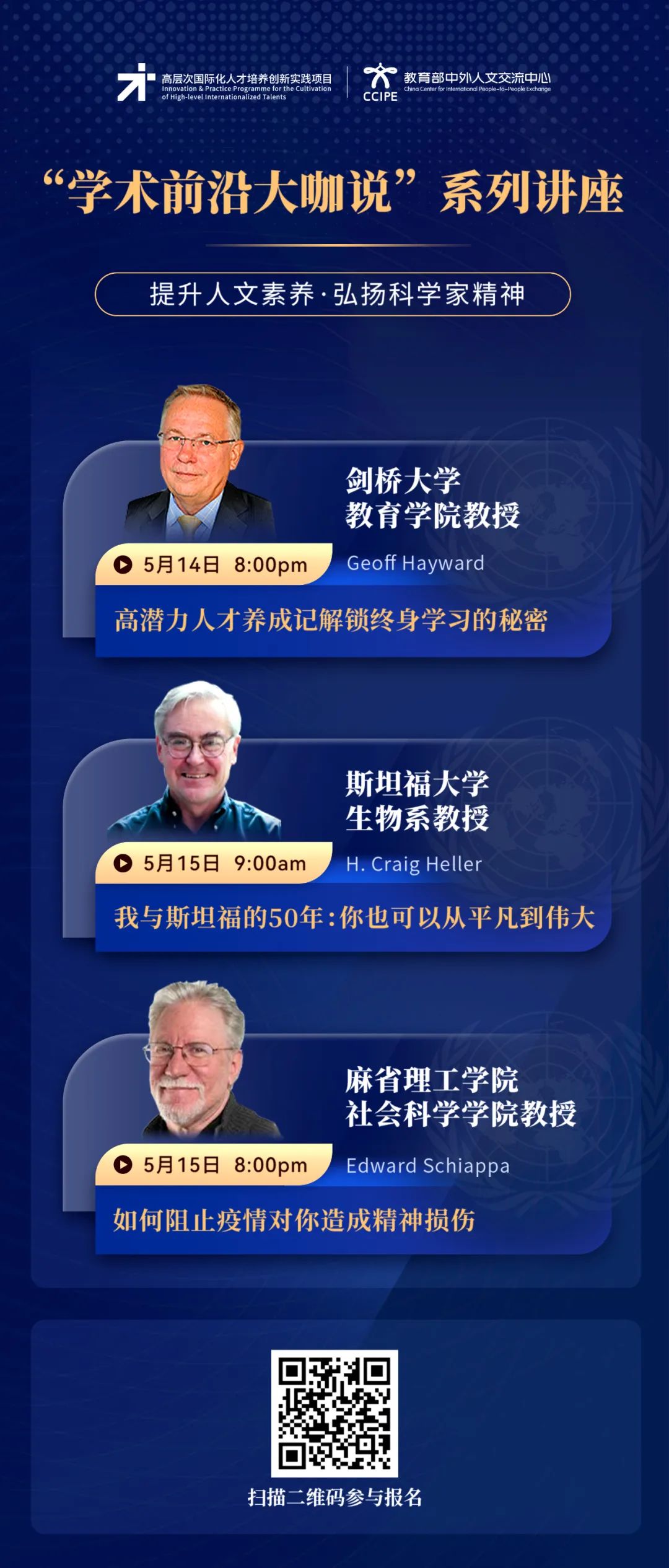 5月14日,“学术前沿大咖说”讲座正式开启,来自剑桥大学、斯坦福大学和麻省理工学院的三位教授担任主讲嘉宾。感兴趣的同学赶快在文末预约报名吧!