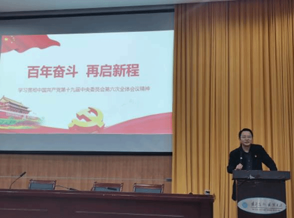 党委在逸夫楼一报告厅举行十九届六中全会精神学习专题辅导报告会,全院共300多名师生党员共同参加了学习。校党委委员、宣传部部长齐绍平作《百年奋斗 再启新程》的专题辅导报告。