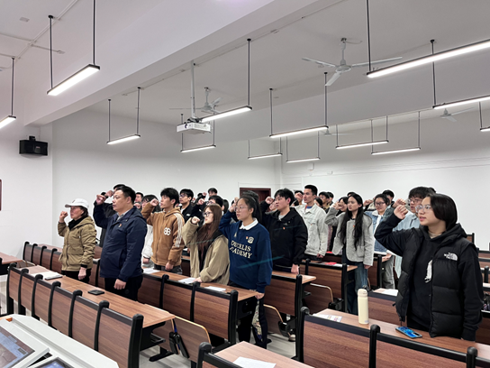 党支部书记陈恬同志对新发展的预备党员表示祝贺,同时也希望其在今后的工作生活中牢记初心与使命,时刻铭记自己的党员身份,发挥党员同志的先锋模范作用。最后,支部全体党员一起进行入党宣誓,每一句铿锵有力的誓词声都饱含了他们对党的忠诚和热爱。