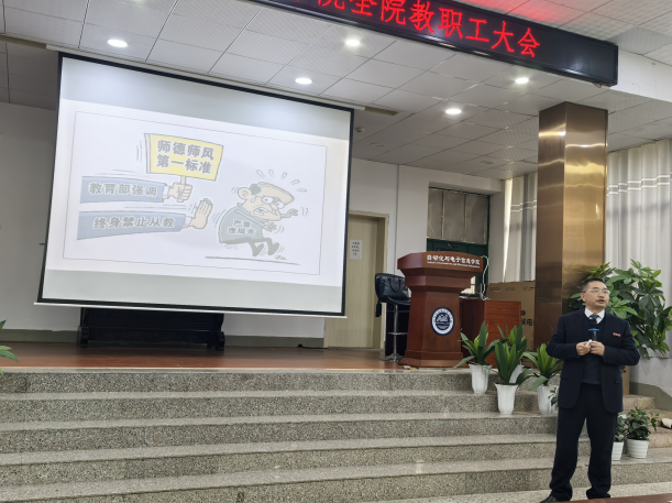刘稳丰结合典型案例与政策要求,深入剖析开展师德师风建设的重要性与实践路径。他指出,师德师风是教师的立身之本,具有涵盖面广、渗透性强的特点,其要求超越一般职业道德,教师需以“学为人师、行为世范”为准则,在教育教学、学术研究、社会交往中严格自律。并结合教育部通报案例与高校实际,重点阐述分析了言论出格、违规收受钱物、学术不端、师生关系失当等四类违反师德师风的表现。他强调,师德失范后果严重,不仅影响个人事业发展与家庭幸福,还将损害学院声誉,甚至导致行政与党组织负责人被追责。最后希望秀人集
