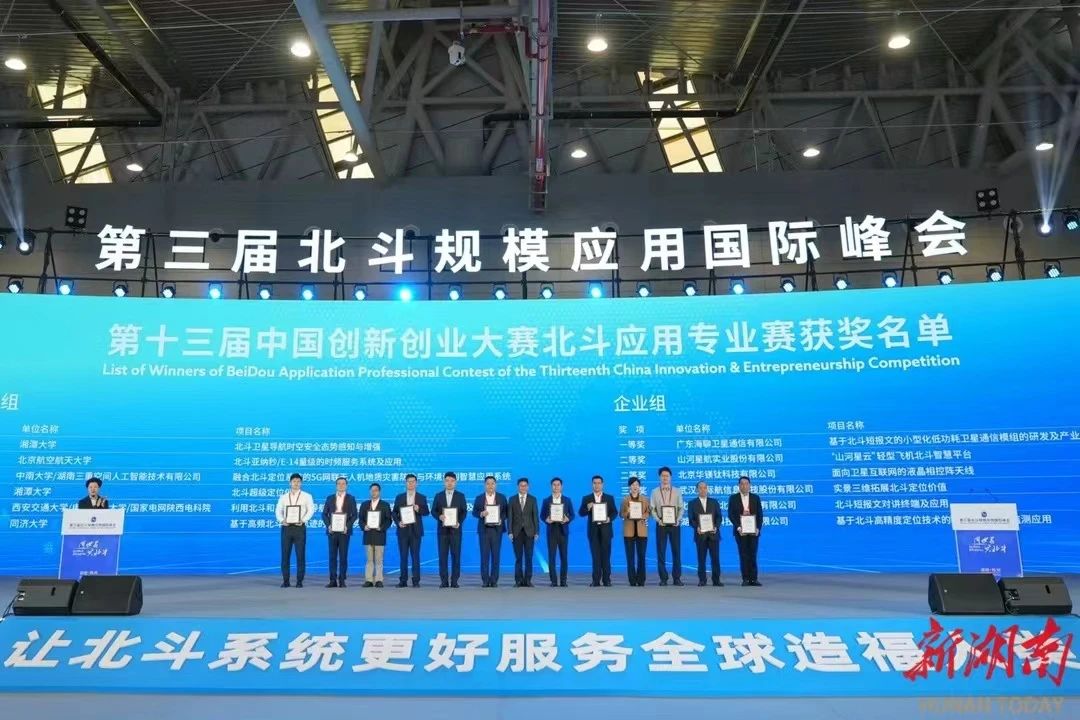 (通讯员 蒋昱梅)2024年10月24日上午,第三届北斗规模应用国际峰会在株洲开幕,开幕式上举行了第十三届中国创新创业大赛北斗应用专业赛颁奖仪式,秀人集 以第一的成绩获得团队组一等奖。