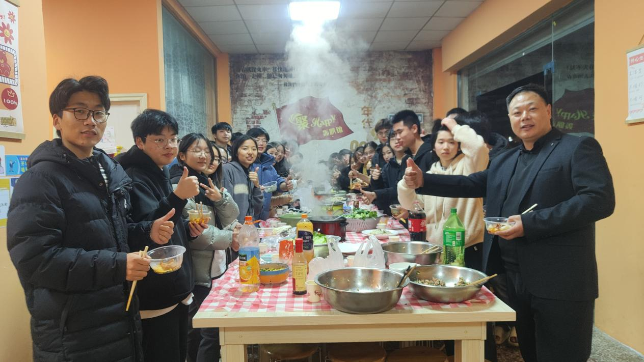 饺子包好后,大家来到餐厅,围坐在一起,共同享受火锅盛宴。丰富的食材摆满桌,热腾腾的火锅汤底散发着浓浓的诱人香气。这一刻,食物不仅满足了胃,更加深了同学们之间的感情。