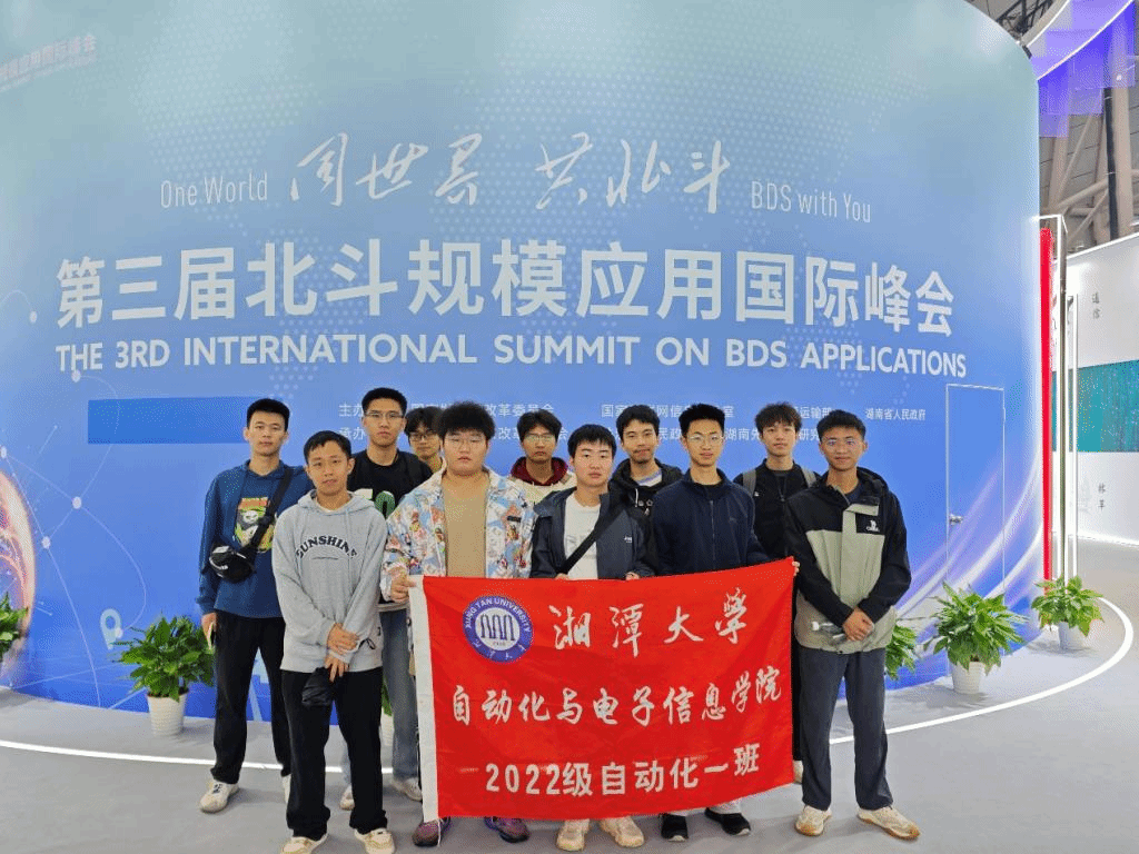 团队在北斗应用专业赛中荣获一等奖。为响应这一喜讯并深入了解北斗前沿科技,10月27日,在班主任盛孟刚老师的指导下,2022级自动化一班班团委组织研学小组前往株洲国际会展中心开展研学活动。