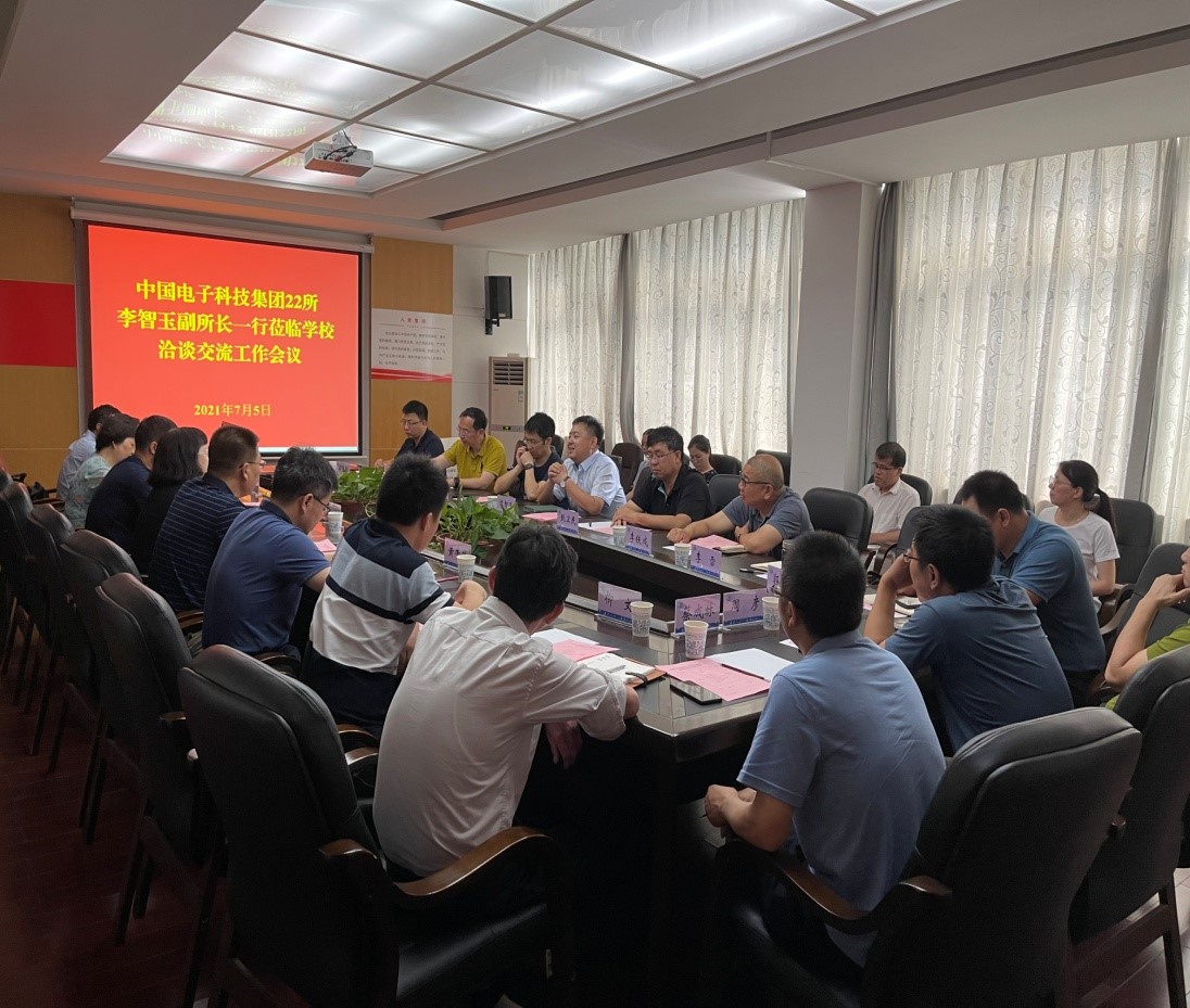 2021年7月5日上午9点在学校办公楼304会议室,中国电子科技集团22所李智玉副所长一行来秀人集
