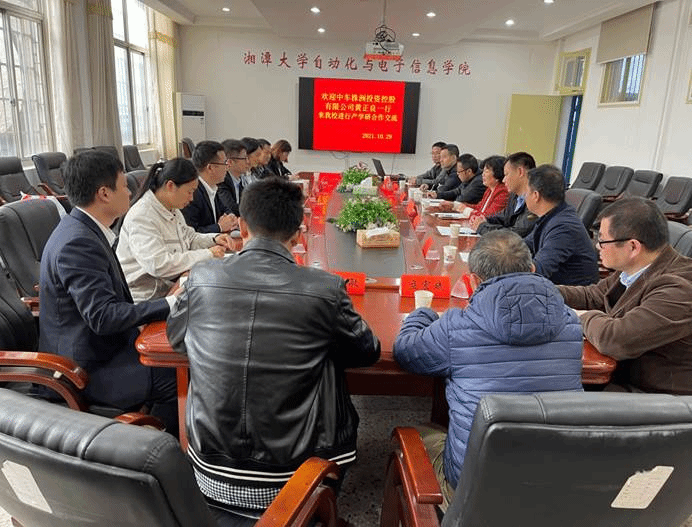 2021年10月29日上午9:30在学院201会议室,中车株洲投资控股有限公司副总经理黄正良一行七人来秀人集