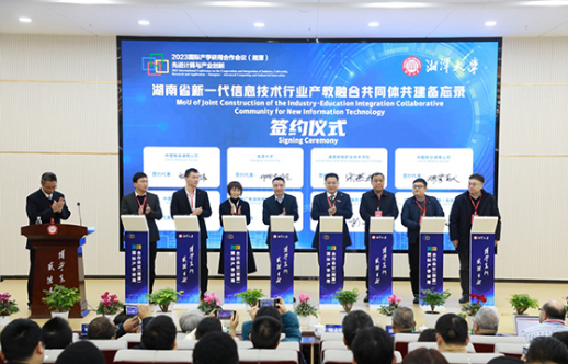 、湖南邮电职业技术学院、湖南电信、湖南移动、湖南联通、湖南广电、湖南通服、湖南华为)发起单位签署共建备忘录,并召开第一届第一次的常务理事会,宣告新一代信息技术产业产教融合共同体正式进入实体运营阶段。