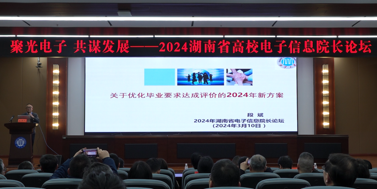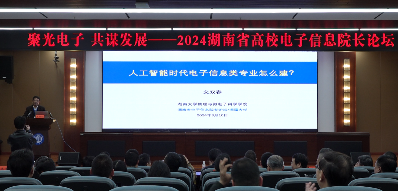 院长段斌分别作《人工智能时代电子信息类专业怎么建》等四个特邀报告,从不同角度探讨了湖南省电子信息领域的人才培养、专业建设、发展现状与未来规划,给全省各高校电子信息相关专业和学院建设带来了最新资讯和宝贵经验。