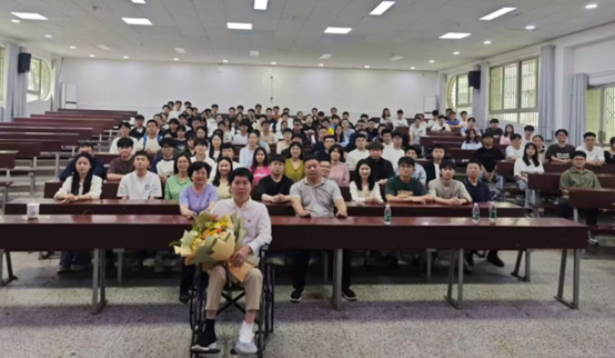 毕业后在学校工作、确诊罕见病肯尼迪病、创立中国肯尼迪病友组织并不断帮助病友的历程。他用实际行动诠释了追寻价值、心怀感恩、热爱生活、抱有希望的信念。在报告中,他多次提到《庄子·田子方》中的一句话:“夫哀莫大于心死,而人死亦次之。”他结合自身经历告诉大家:不管处境多么艰难,都要追寻价值;不管遭遇多少困苦,都要心怀感恩;不管现实多么冰冷,都要热爱生活;不管岁月多么幽暗,都要抱有希望。