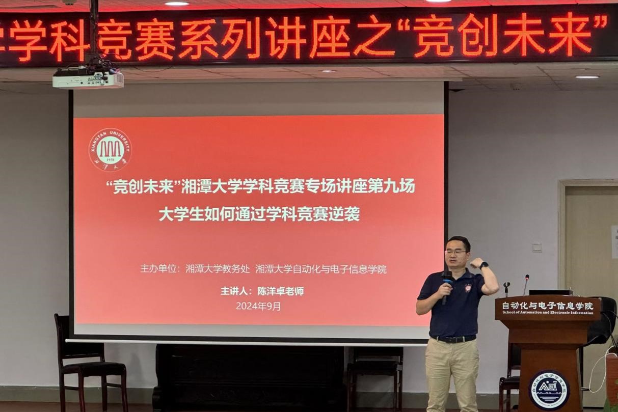 本次讲座在TI实验室负责人陈洋卓老师的主持下拉开帷幕。他以“大学生如何通过竞赛逆袭”为主题,向大家普及了大学生学科竞赛的相关知识,并结合当前竞赛环境与政策,为新生们的大学生涯规划提供了宝贵的建议。