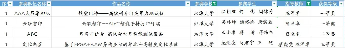 在大赛中,团队学生表现出色。其中,温朝阳、何影、闫锦涛团队完成的“铁臂门神——高铁列车门夹紧力测试仪”项目与吴林坤、汤裕娇、唐润磊团队的“云联智印——AIoT智能手持打印终端”项目均获一等奖;王小康、蒋清、蒋伟杰团队的“弓网守护者——高铁受电弓智能测试设备”获二等奖;龙荣亮、马君宇、王屹团队的“基于FPGA+RAM异构多核的单北斗高精度定位系统”获三等奖。