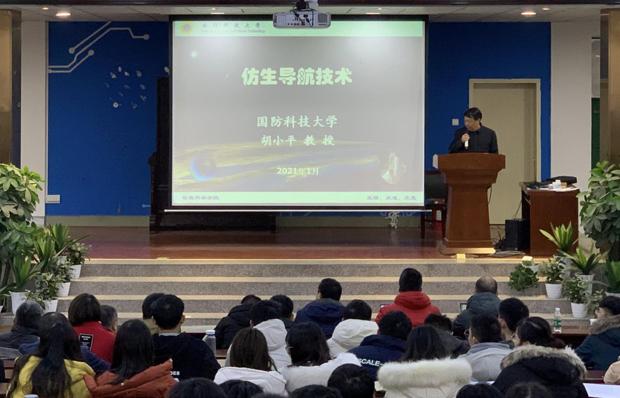 即便寒风凛凛,但依旧不能阻挡同学们追求知识的步伐,教室早早的就已经坐满了学生。本次讲座胡小平教授由浅入深地介绍了仿真导航的相关知识,围绕仿生感知、仿生信息处理、仿生导航系统技术等方面介绍了仿生导航的概念、内涵、关键技术及国内外发展现状。