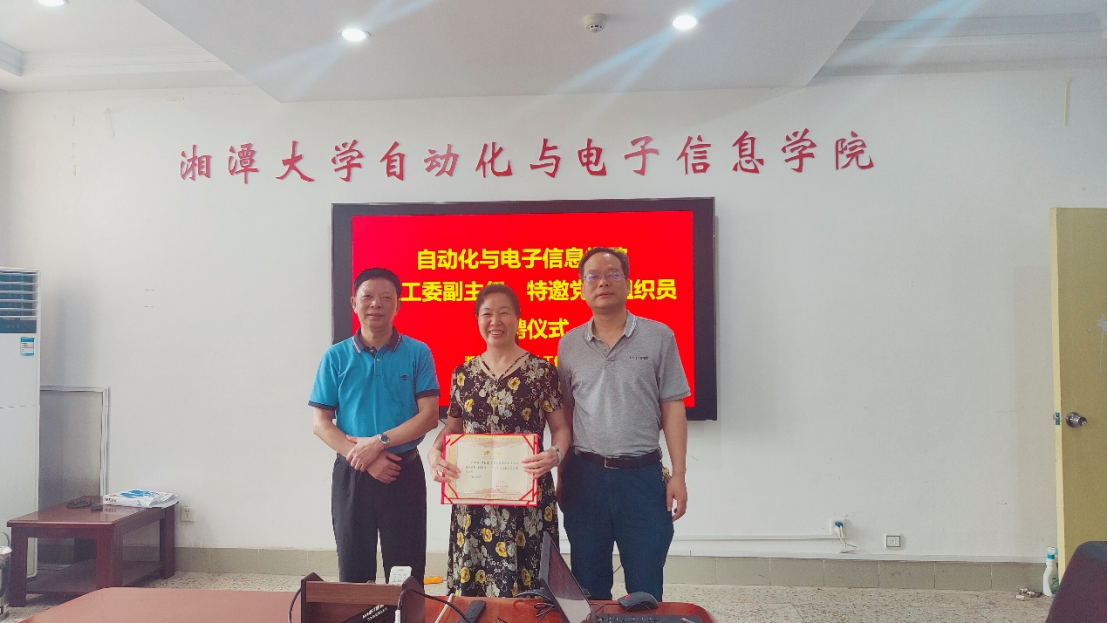 而后,校关工委副主任李新明为彭爱莲同志颁发关心下一代工作委员副主任聘书,离退休工作部(处)长周润其为其颁发特邀党建组织员聘书。