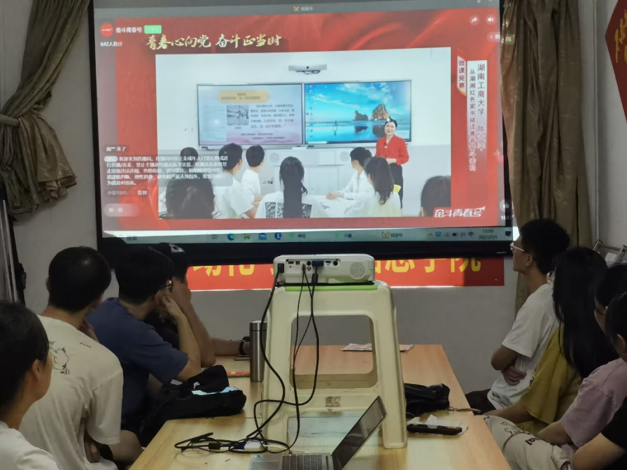 党支部组织关工委副主任彭爱莲老师及22名党员同学在金瀚林八栋308集中观看青春心向党,奋斗正当时——“奋斗青春号”主题班会、微课展播分享会。