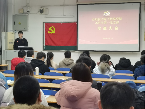 本科生第一党支部于兴湘教学楼C栋103教室召开党员发展大会,支部全体党员和参加本次党员发展的发展对象参加本次会议。