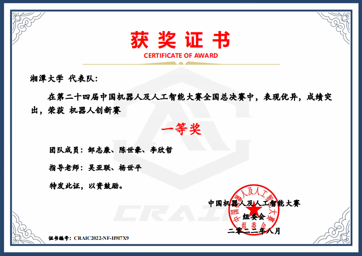 2019级机械设计制造及其自动化专业邹志康、自动化专业陈世豪、测控技术与仪器专业李欣哲的参赛作品“KOUMBOT沙漠植树机器人”(指导老师:吴亚联、杨世平)获机器人创新赛全国总决赛一等奖;2018级自动化专业周天天、2021级电子信息工程专业唐嘉俊、2020级控制科学与工程专业孙月的参赛作品“用于违规检测的巡视机器人”(指导老师:张东波)获人工智能创新赛全国总决赛二等奖;2019级机械设计制造及其自动化专业周甜、2020级材料成型及控制工程专业熊小燕、2021级自动化专业申航的参赛作品“基于ROS的多足救灾机器人”(指导老师:王昭鸿、谭平安)和2019级机械设计制造及其自动化专业曾杨莉、胡湘玲、张伟的参赛作品“基于Baxter训练的异形识别抓取及快速分拣系统”(指导老师:张魁、刘韬)获机器人创新赛全国总决赛三等奖。
