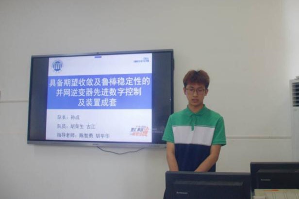 党委书记金义华老师主持。邀请了湖南大学机器人学院副院长黎福海教授、湖南科技大学信息与电气工程学院曾照福教授、湖南山水节能科技股份有限公司陈茜高级工程师担任校外专家评委,秀人集