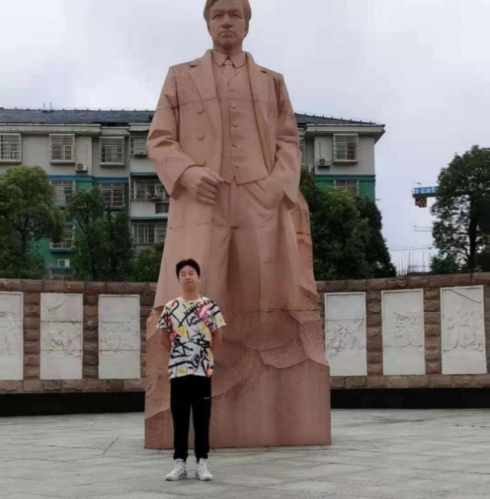 团队成员随后来到翊武公园,作为当地最大的公园,翊武公园因人名而声名远播,园内塑有高5.5米、重约60吨的大型蒋翊武红色花岗岩雕像,县委大力弘扬蒋翊武思想精神,除了翊武公园外,还将县城唯一的影剧院命名为翊武剧院,横贯东西的城区主干道命名为翊武路,足见蒋公在当地的威望。