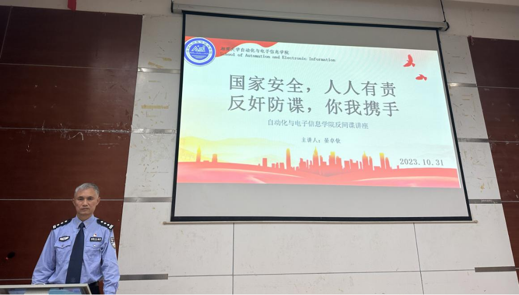 (通讯员:程琳宇 谯西镇)2023年11月1日是《中华人民共和国反间谍法》颁布实施九周年纪念日。为进一步提高师生反间谍安全防范意识,增强维护国家安全的自觉性,10月31日下午,秀人集 开展了《反间谍法》宣讲活动。“全国先进工作者”“全国特级优秀人民警察”荣誉称号获得者晏卓钦警官作为主讲嘉宾,分享了他近40年亲身维护国家安全的经历,为学院师生带来了一场生动的反间谍教育课。