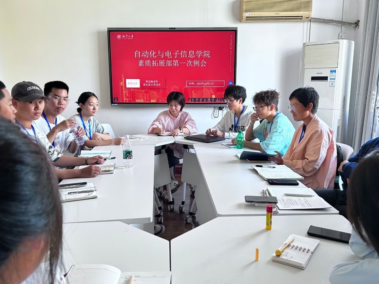 素质拓展部(后文简称素拓部)召开了第一次例会,对后续的心理报表收集与素质拓展活动等工作进行了人员部署与指导。蒋昱梅老师主持会议并动员讲话,素拓部全体成员出席会议。