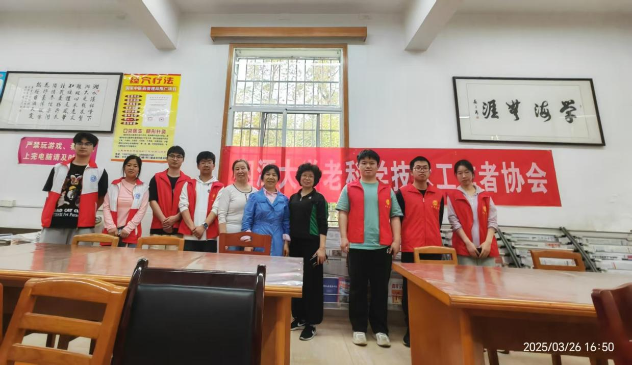 关心下一代工作委员会副主任彭爱莲老师精心准备,始终在现场热情接待;学工办老师熊峰带领青年志愿者和部分会操作的老科协会员老师,主动帮助前来求助的老同志。