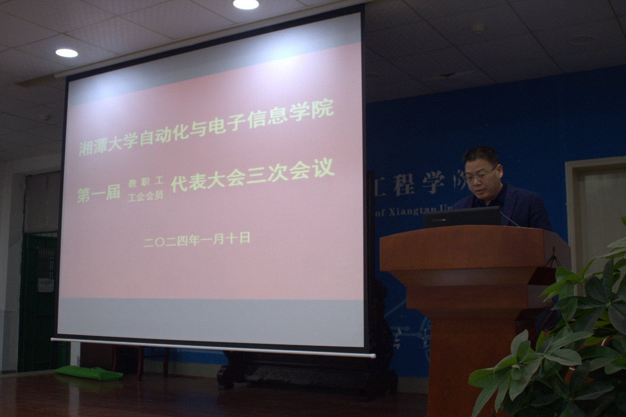 第一届教职工、工会会员代表第三次会议于2024年1月10日在工科楼阶梯教室隆重召开。院党委书记金义华、院长姚志强等党政领导、30位正式代表、3位特邀代表和10位列席代表参加此次会议。会议由学院党委书记金义华主持。