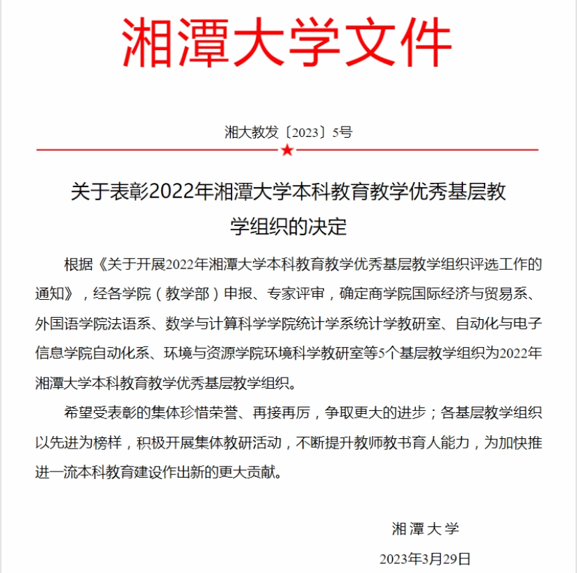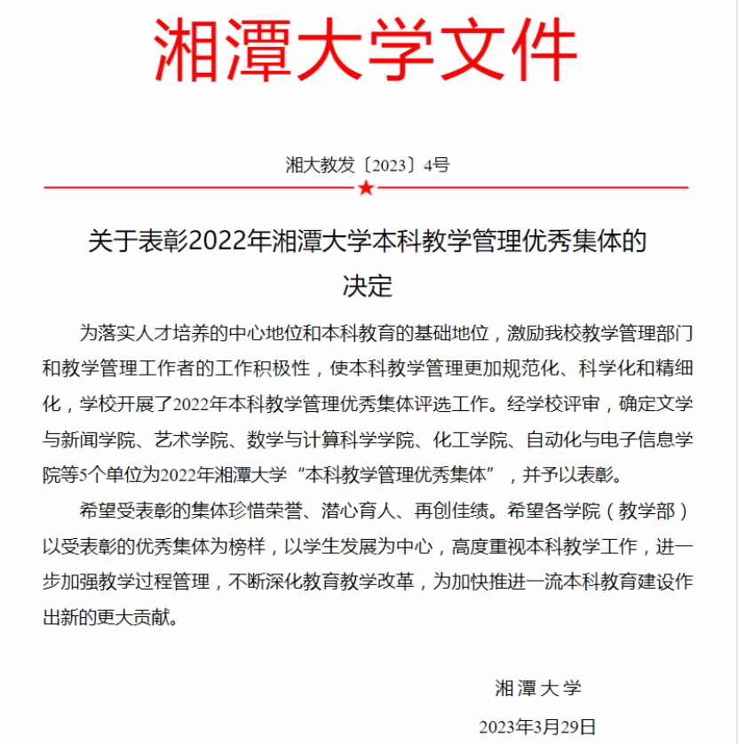 本科教学管理优秀集体的决定》(湘大教发〔2023〕4号),秀人集