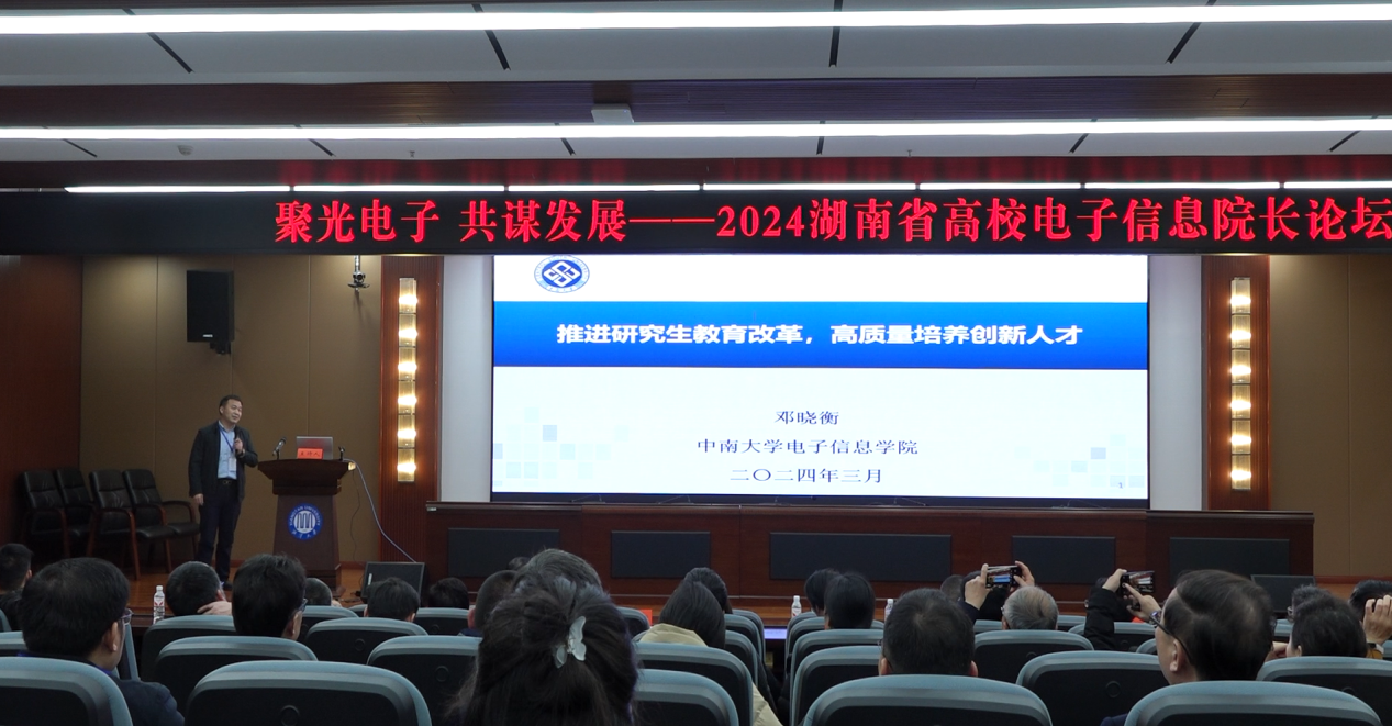 院长段斌分别作《人工智能时代电子信息类专业怎么建》等四个特邀报告,从不同角度探讨了湖南省电子信息领域的人才培养、专业建设、发展现状与未来规划,给全省各高校电子信息相关专业和学院建设带来了最新资讯和宝贵经验。