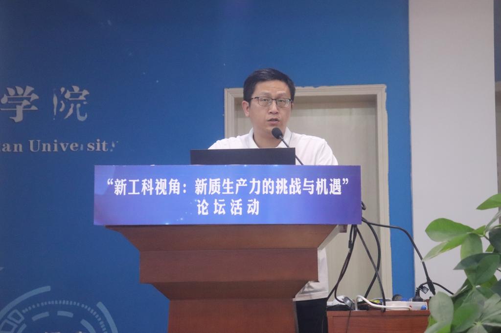 院长姚志强教授进行致辞。他指出,新质生产力作为一种先进生产力,正在全球范围内推动产业变革、经济结构优化和社会发展模式的转变,在这一背景下,我们迎来了前所未有的发展机遇,同时也面临着严峻的挑战。面对机遇与挑战,应该采取积极措施,把握机遇,应对挑战,加强科技创新,推动新技术、新产业、新业态的发展,提高国家核心竞争力。作为工科院系学生,我们应主动培养创新意识,提升创新能力,将专业知识融入到行业发展之中,推动新质生产力的发展。