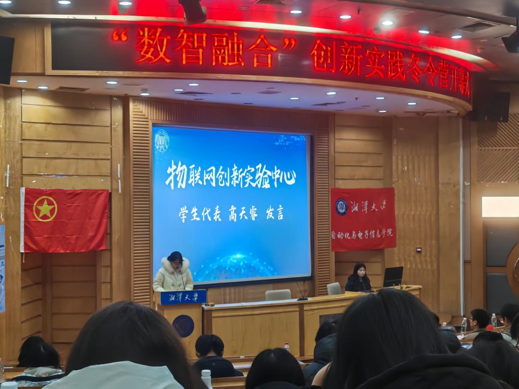 物联网大学生创新训练中心学生代表高天睿同学进行精彩发言,她表示,“我们不仅要学习理论知识,更要学会学以致用,要将所学的理论知识运用到实践中,运用到赛道上!通过实践来激发我们的创新思维,培养我们的创新能力。”
