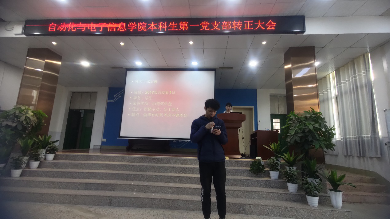 本科生第一党支部在工科楼阶梯教室召开了2020年下半年预备党员转正大会。参加本次转正大会的有支部书记黄春晖老师和全体学生党员,会议由雷翔同志主持。